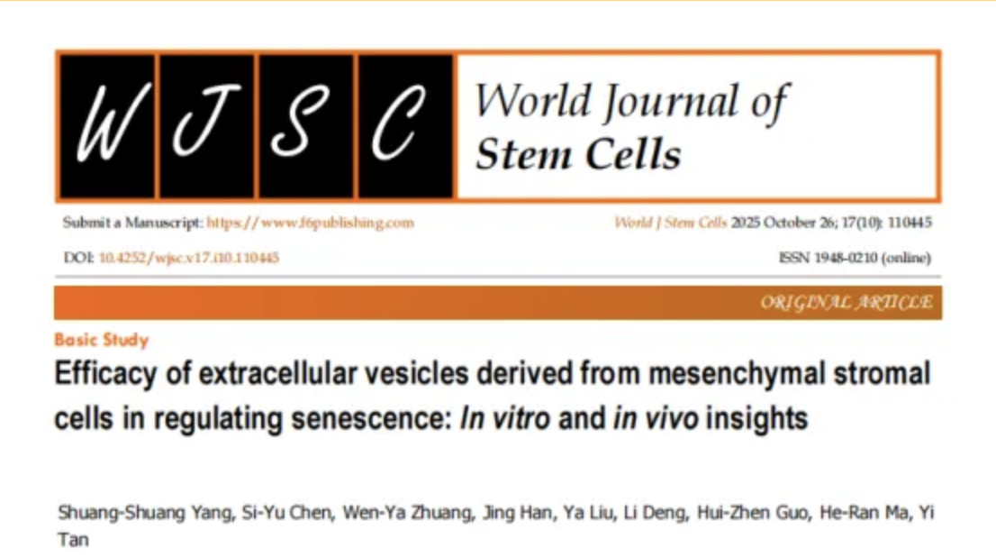 前言近日,山东省齐鲁细胞治疗工程技术有限公司(以下简称“齐鲁细胞”)研发团队在干细胞与衰老研究领域取得重要进展。由谭毅博士、杨双双博士领衔的研究团队,在国际期刊《World Journal of Stem Cells》(2025年10月26.... 了解详情